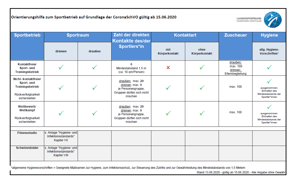 Aktuelle Geplante Lockerungen Sport Per 15 06 2020 Wmtv Solingen
